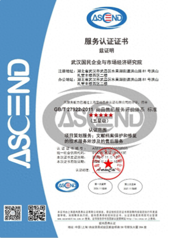 在服务体系建设方面,“武研院”亦已取得国家权威机构颁发的商品售后服务评价体系五星级认证(GB/T 27922-2011),服务能力涵盖项目策划、文献档案保护和修复等环节的售后服务,进一步夯实了“以服务创价值”的综合保障能力。