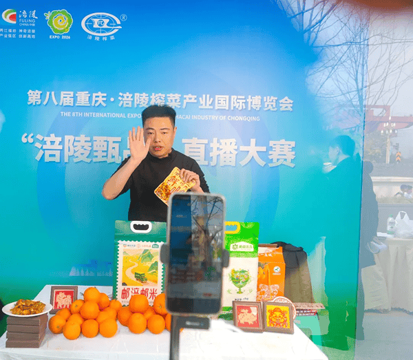 “非遗贺新春 直播焕华彩”。2月6日,由涪陵区委宣传部、区委网信办、区商务委联合主办的第八届重庆·涪陵榨菜产业国际博览会“涪陵甄品”直播大赛决赛,在涪陵展销中心圆满举行。本次大赛以数字化营销为抓手,推动非遗文化与直播带货深度融合,既为涪陵特色产品推广、农文旅融合发展注入新动能,也为新春消费市场增添了浓郁的涪陵年味。